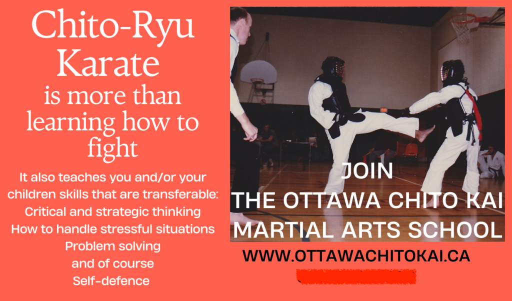 Ottawa Chito-Kai teaches the traditional Okinawan Martial Arts of Karate and Ryukyu Kobujutsu. Since 1980, Ottawa Chito-Kai continually strives for excellence of traditional Okinawan Martial Arts.
